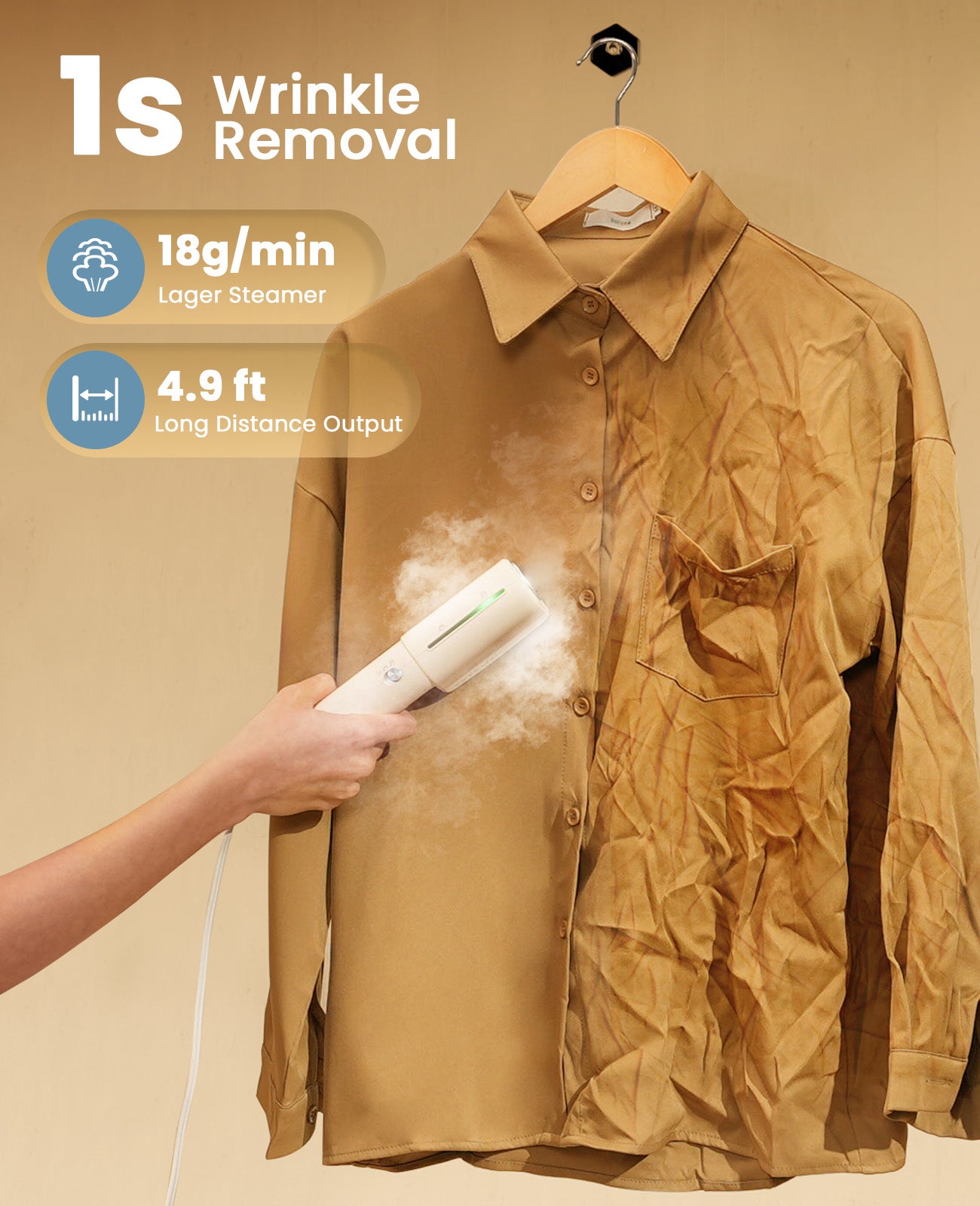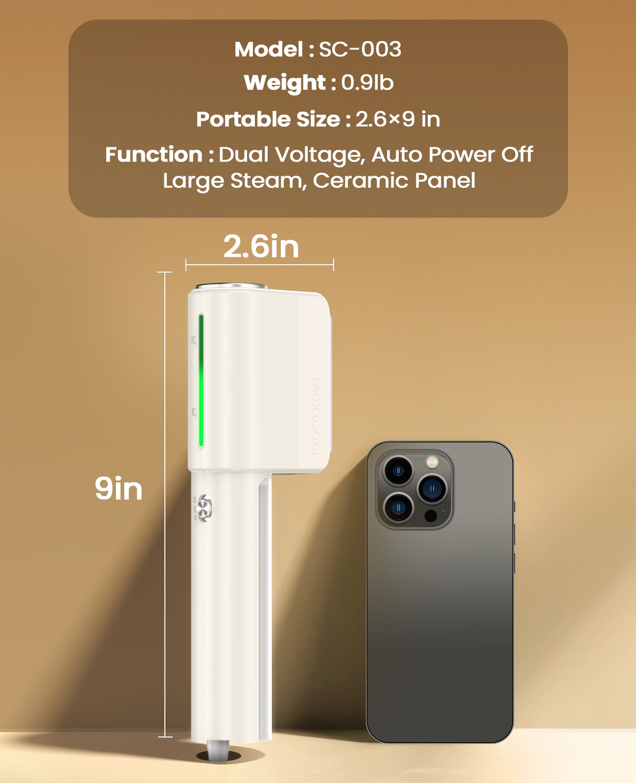 Quick & Powerful Wrinkle Remover: SC-002 Travel Steamer uses high-pressure steam (248°F) to instantly remove tough wrinkles from clothes, whether from washing, drying, or packing. With 1,000W power and a 15-second heat-up, it’s ready to refresh your outfits in minutes—perfect for suits, dresses, and delicate fabrics. Compact yet strong, it’s your go-to solution for crisp, ready-to-wear looks at home or on the go.